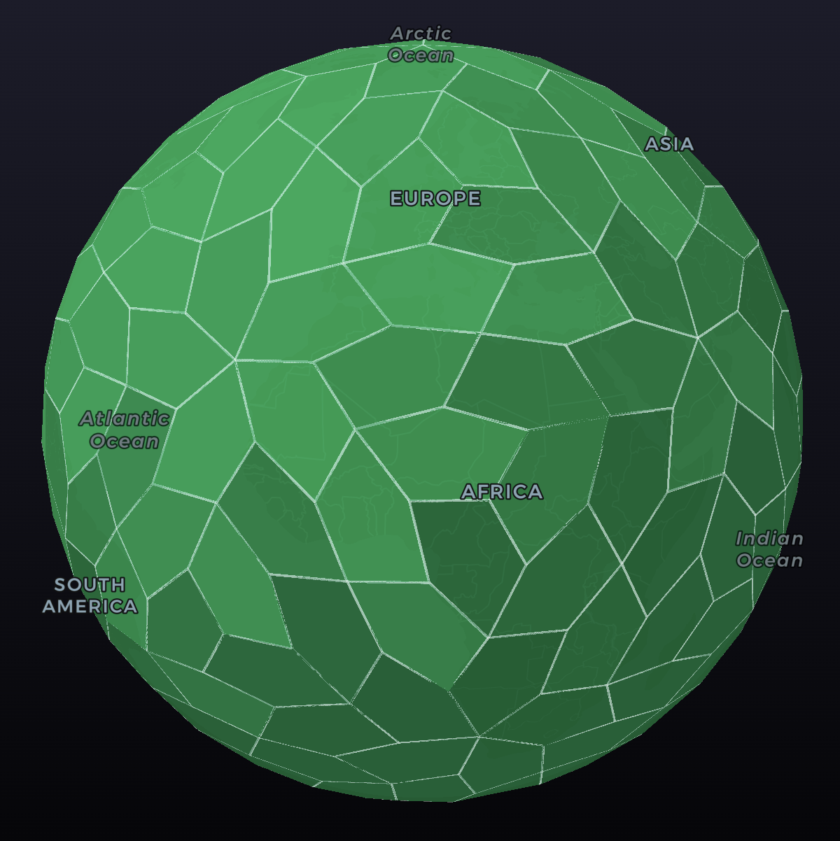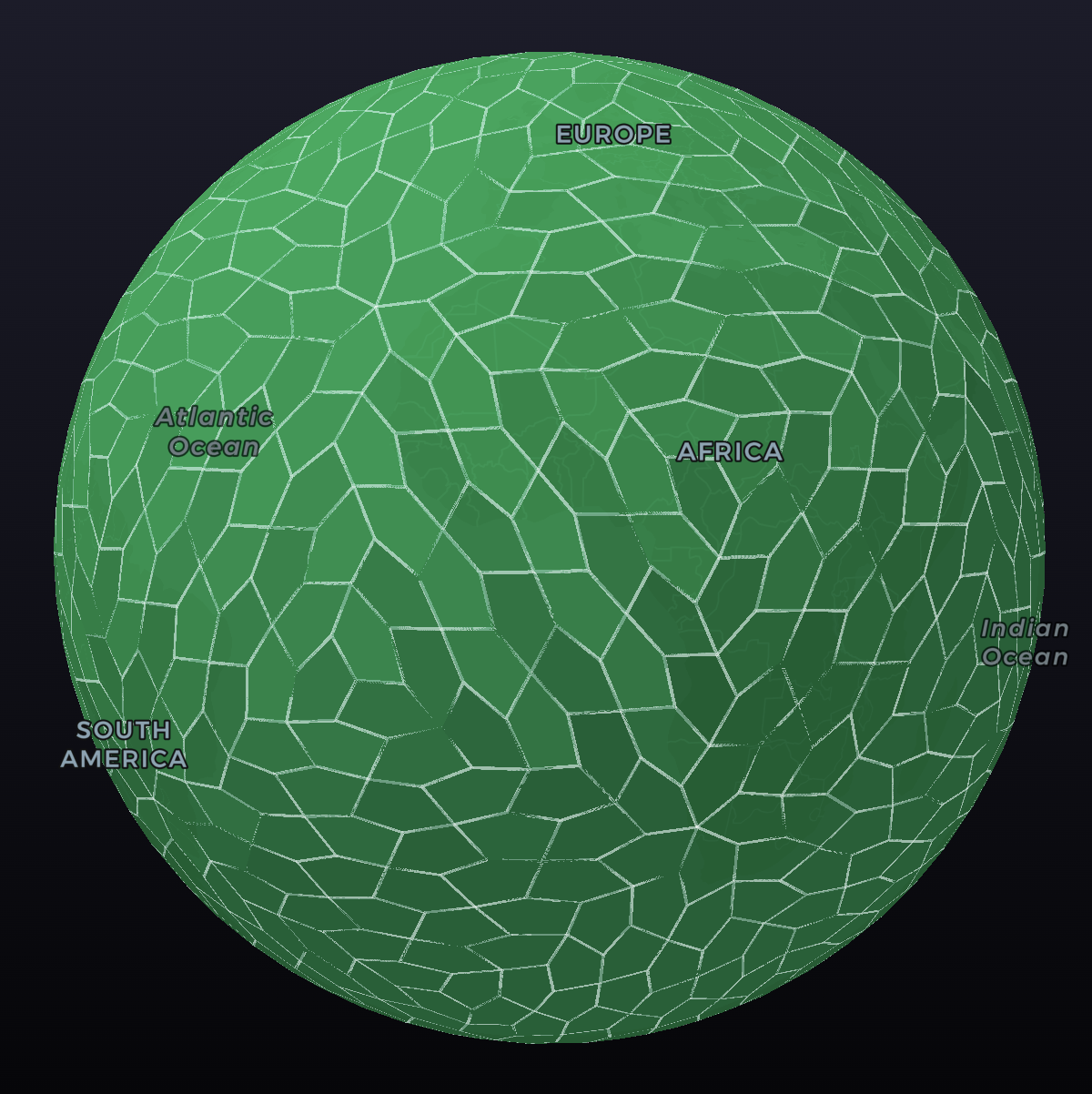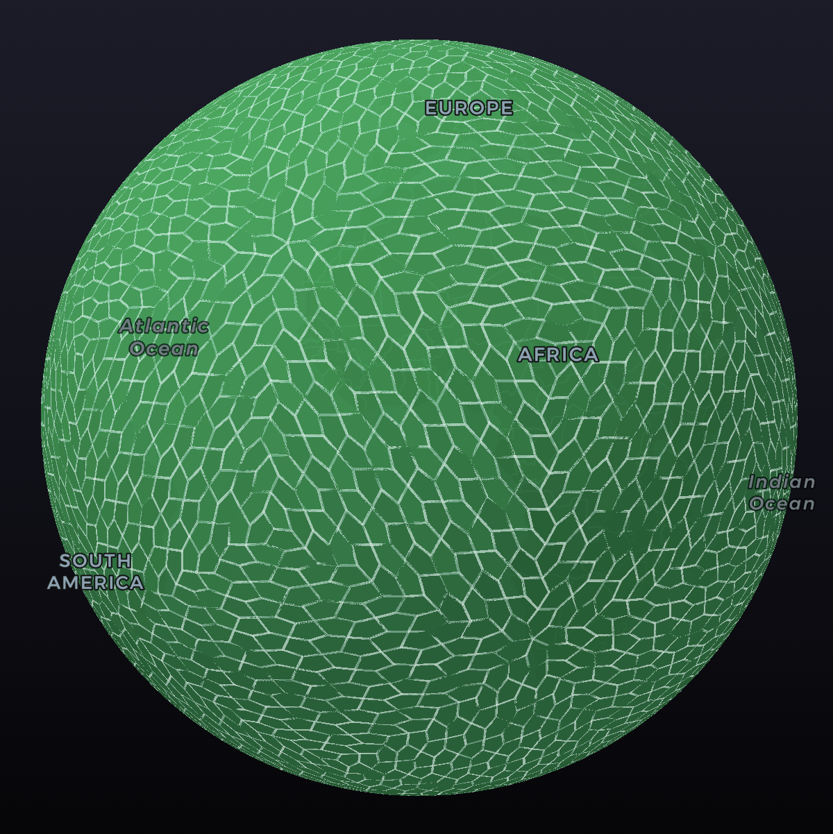 All higher resolution levels are generated by using an ever-finer tiling using the irregular pentagon as a primitive. Even though the tiling forms a jagged edge along each side of the quintant, these edges perfectly mesh into each other, resulting in complete and uninterrupted coverage of the globe.