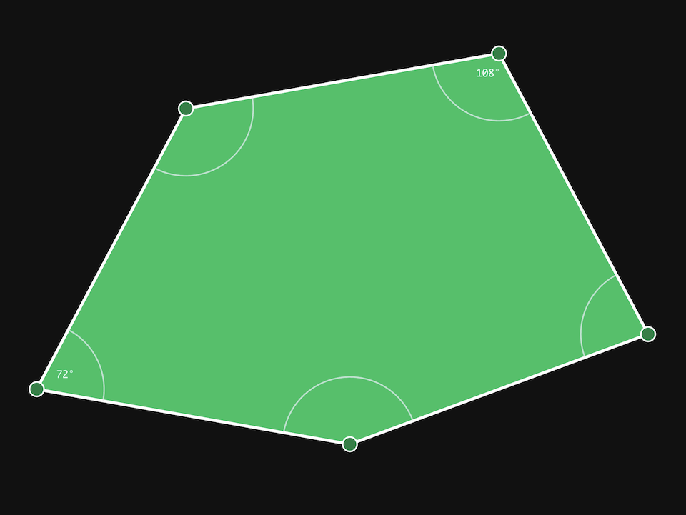 Of particular interest for the purposes of A5, is a pentagonal tiling which has a five-fold rotational symmetry. As shown in the aforementioned paper, such a tiling must have two non-adjacent angles 72° and 108°. With these fixed, all the other angles can be deduced from the fact that the sides are equilateral, as this demonstrates.